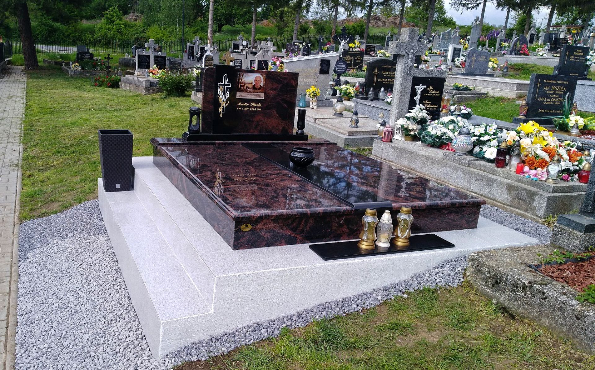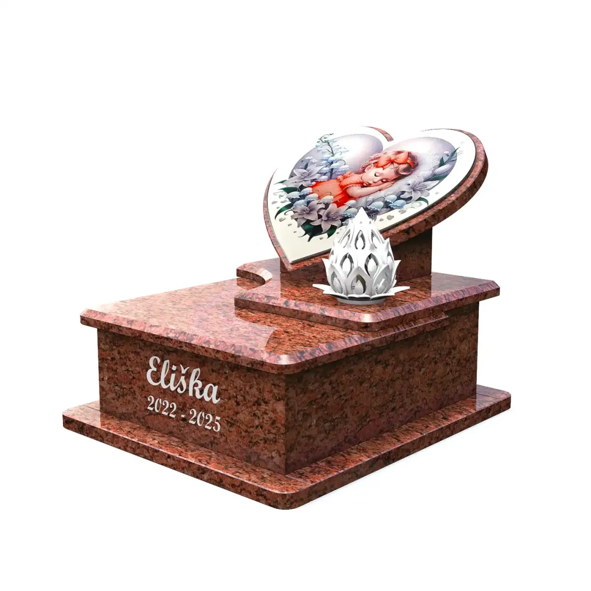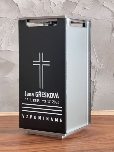 El vidrio es símbolo de pureza y elegancia atemporal. Nuestras lápidas de vidrio están fabricadas con vidrio extra claro, que no distorsiona los colores y aporta a la memoria un aspecto único. Gracias al preciso mecanizado CNC, garantizamos la máxima precisión y calidad en cada detalle. Ya sea que elija una placa sutil por su ligereza y delicadeza, o un vidrio macizo de 10–12 mm de grosor por su resistencia y aspecto impresionante, siempre obtendrá un producto de la más alta calidad. También ofrecemos la posibilidad de grabado y personalización, incluyendo una imagen en la tumba que preserve los recuerdos de forma perfecta.